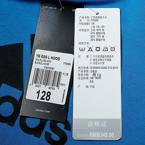 Adidas/阿迪达斯童装专柜同款少男连帽套头衫F79595