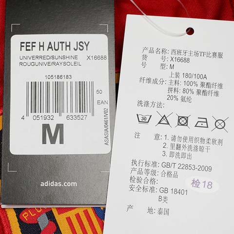 adidas阿迪达斯男子 西班牙主场TF比赛服圆领短X16688