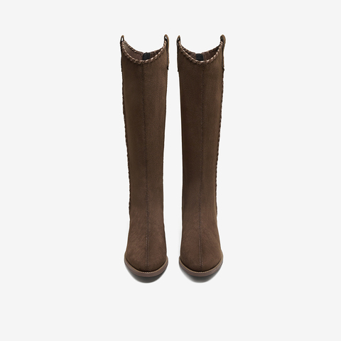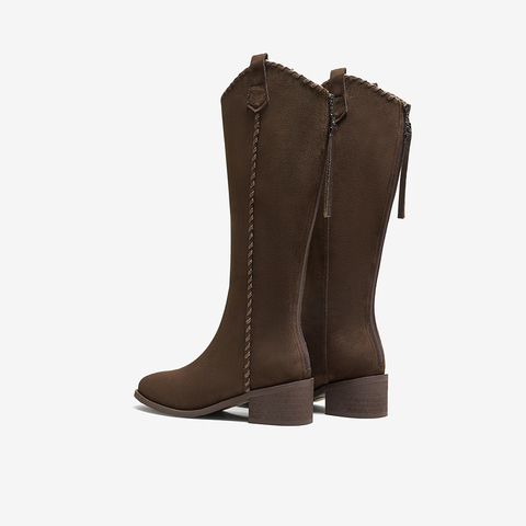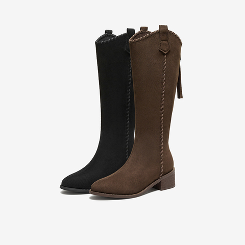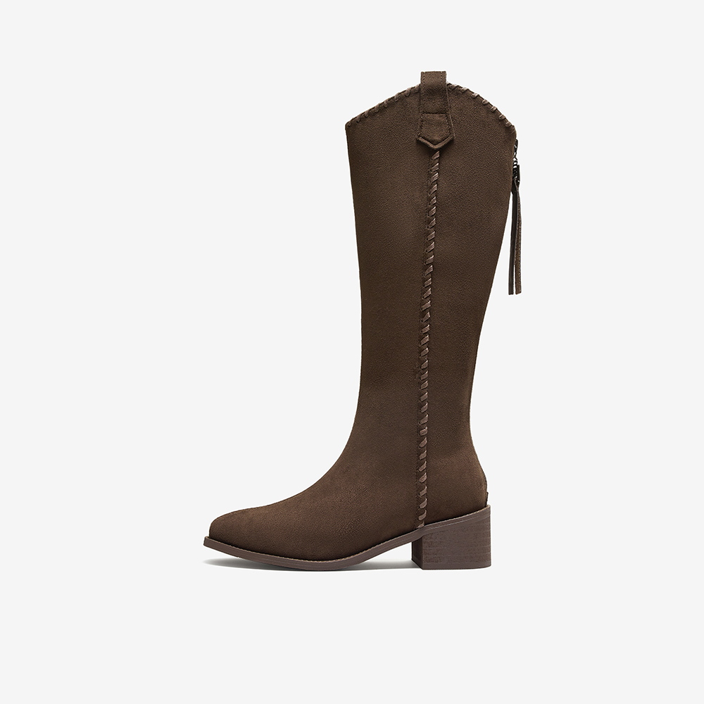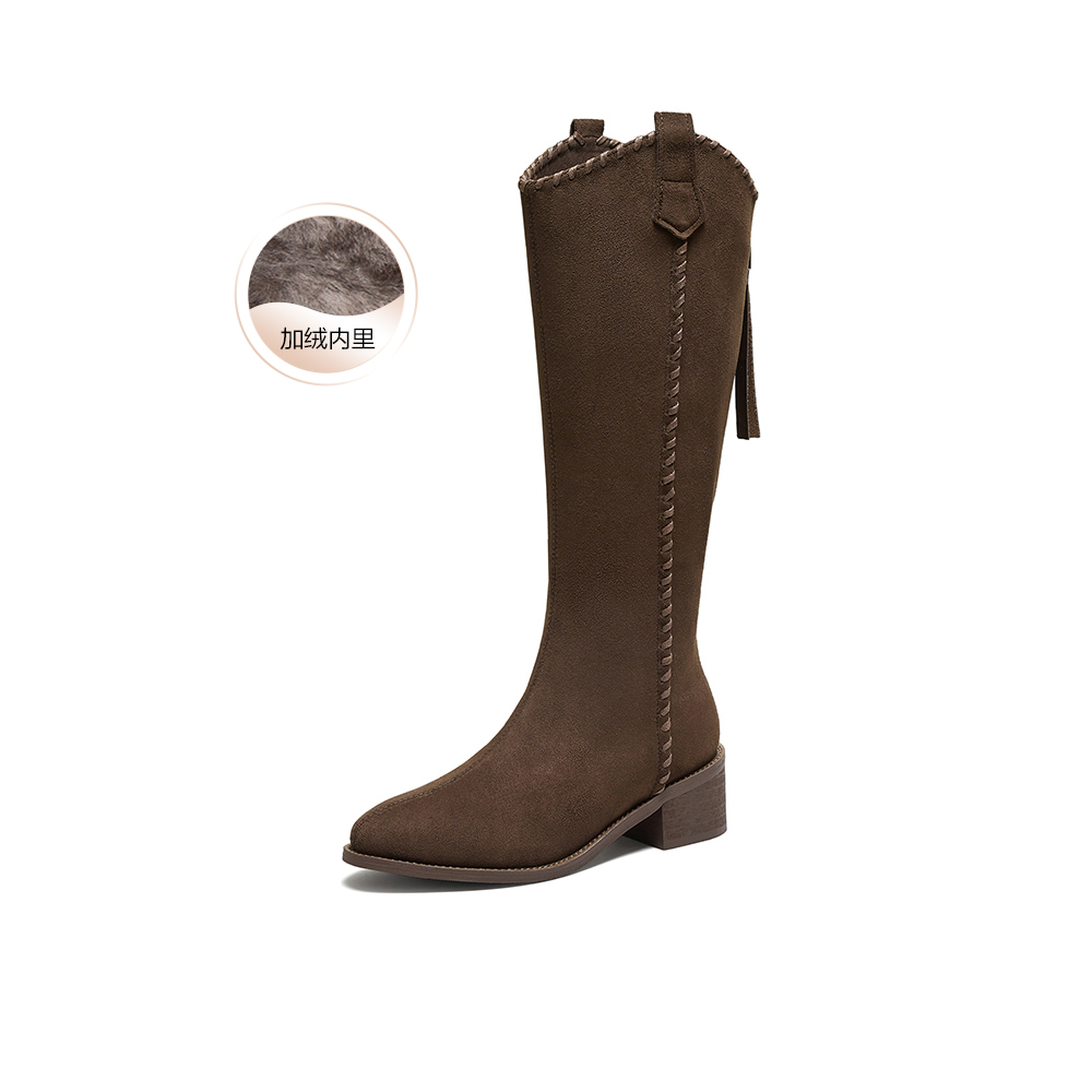 百思图2025冬季新款骑士靴潮流街头粗跟女长靴F3016DG5