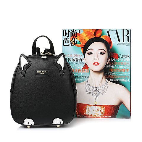 BASTO/百思图春季黑色PU时尚休闲趣味卡通可爱女双肩包X0990AX7