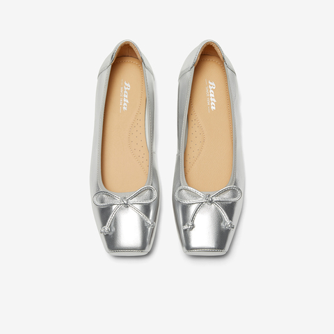 Bata浅口单鞋女2024秋季商场新款羊皮通勤软底蝴蝶结单鞋A4761CQ4