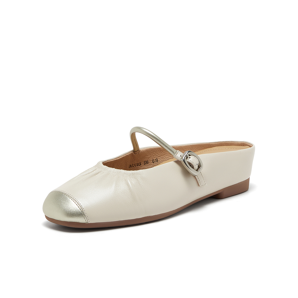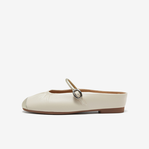 羊皮牛皮软底一脚蹬包头拖