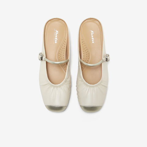 Bata穆勒拖鞋女2025春商场新款羊皮牛皮软底一脚蹬包头拖AUU03AH5