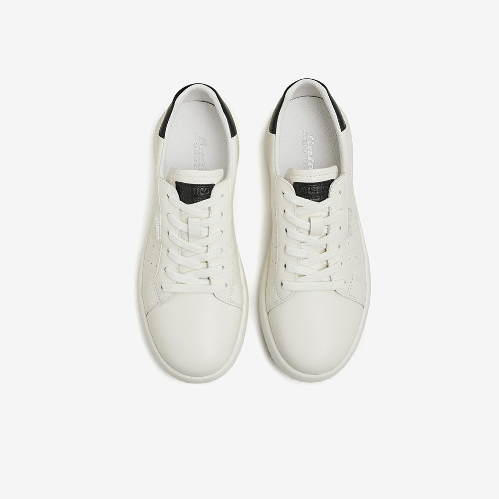 Bata小白鞋女2024春季商场新款通勤牛皮厚底透气运动板鞋WRV72AM4