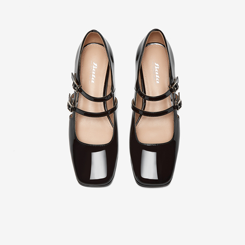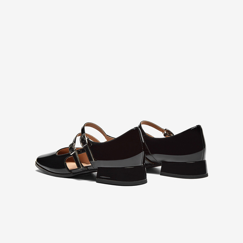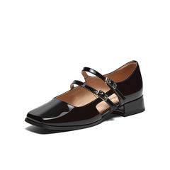 百搭牛皮粗跟复古玛丽珍单鞋
