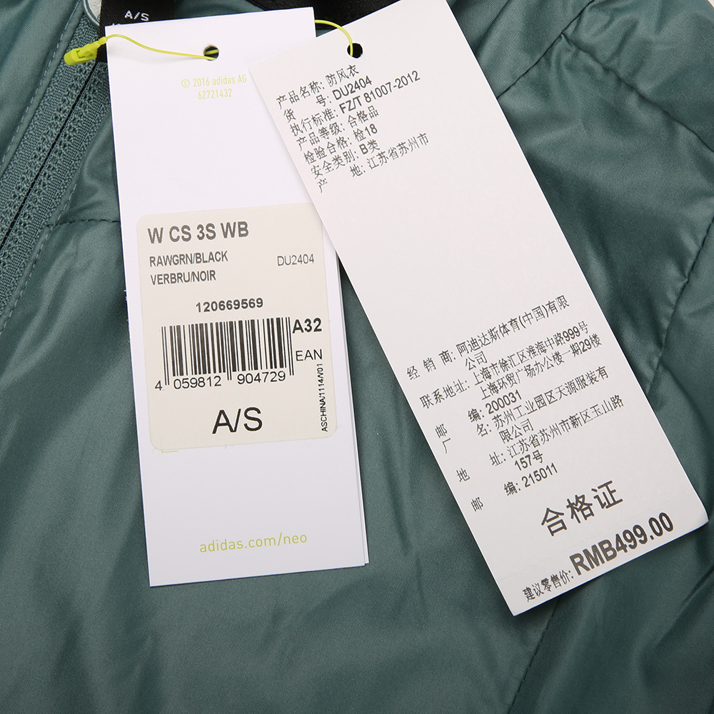 adidas neo阿迪休闲女子W CS 3S WB防风夹克DU2404