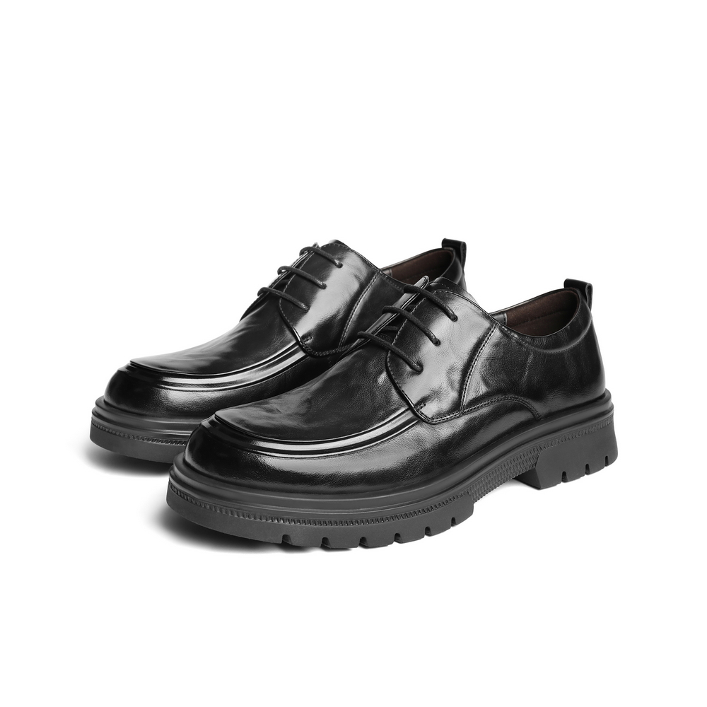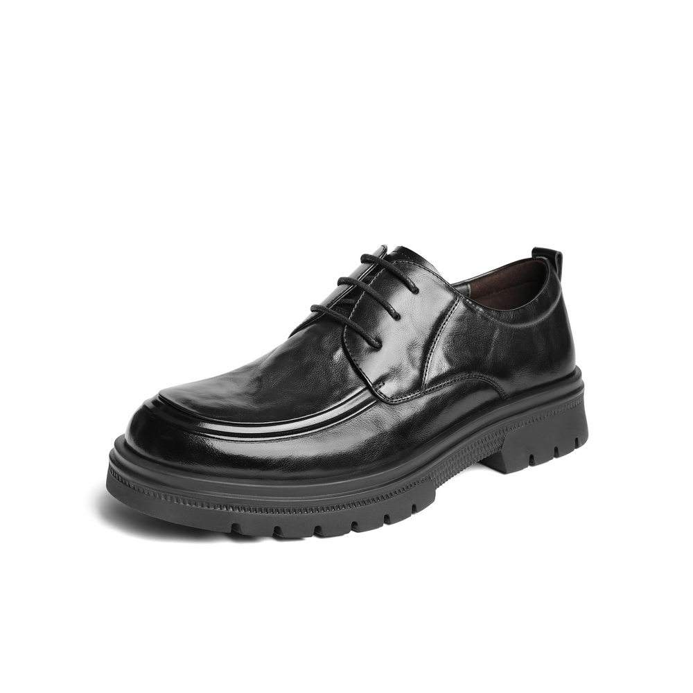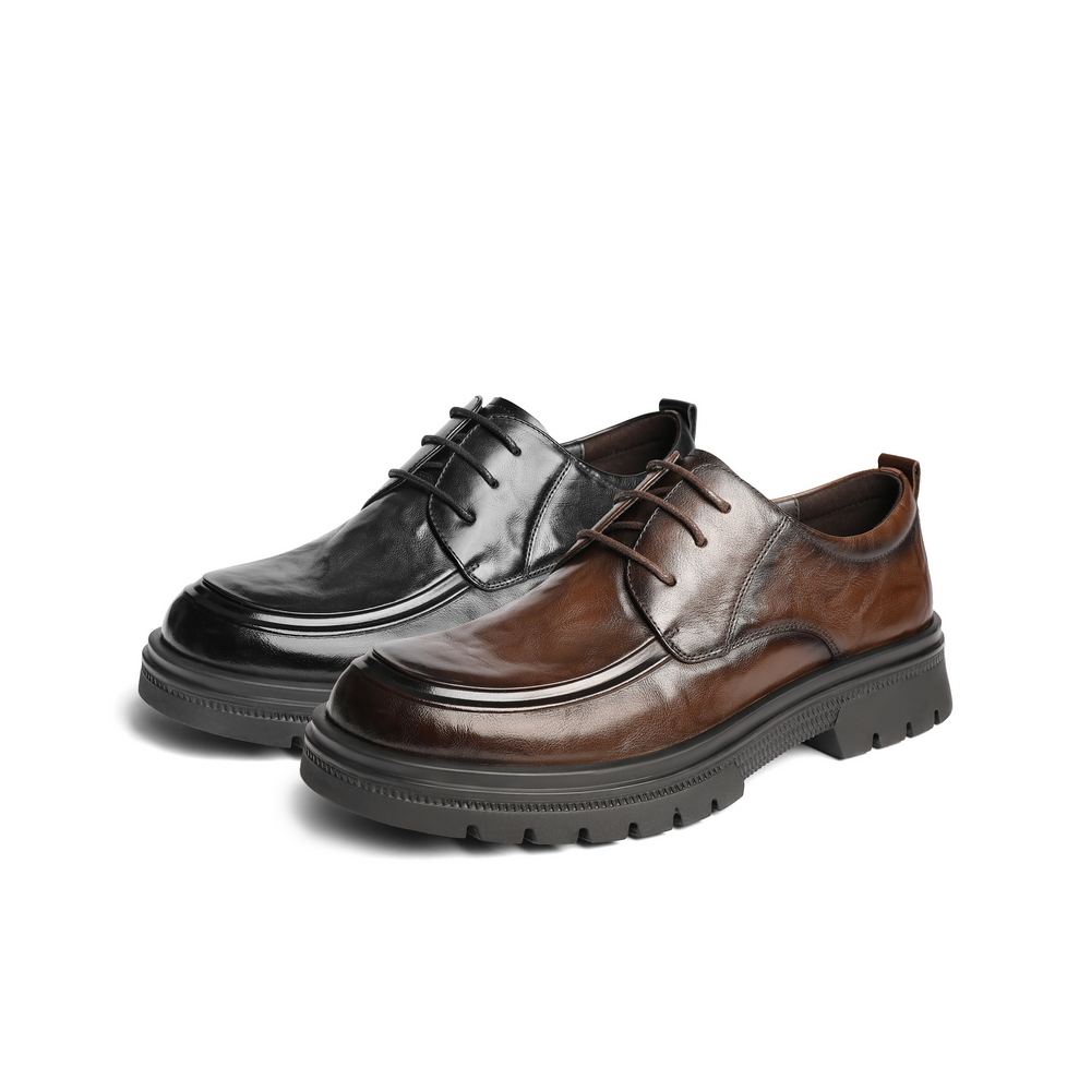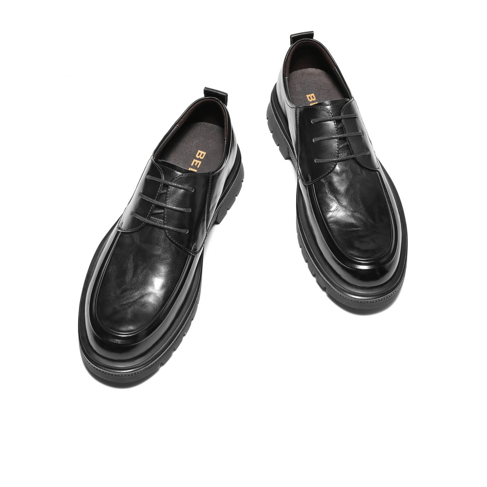 百丽厚底商务休闲皮鞋男士2025春新牛皮革抓纹通勤上班鞋A1906AM5