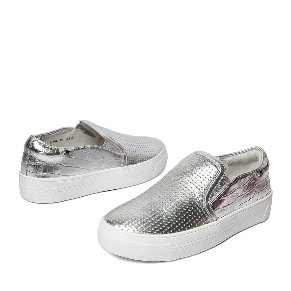 BELLE/百丽春季专柜同款银色贴膜羊皮女鞋(冲孔)BJBB4AM6