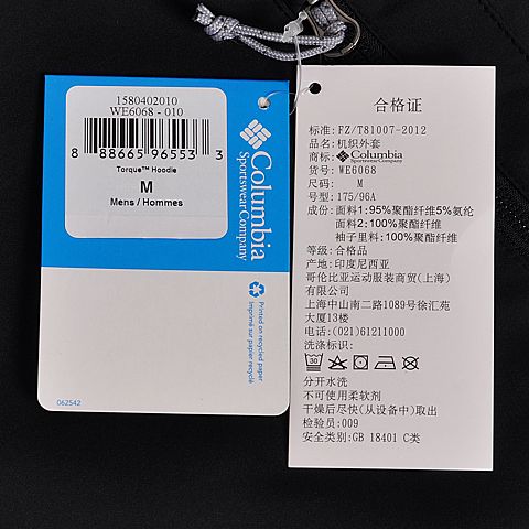 Columbia/哥伦比亚 专柜同款男子冲锋衣WE6068010