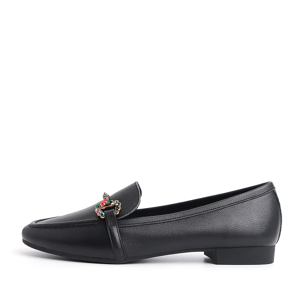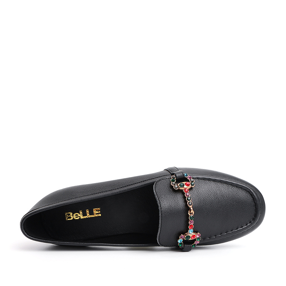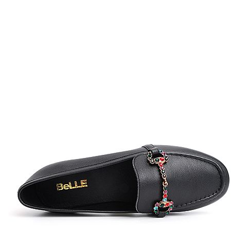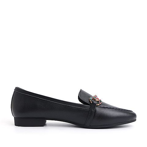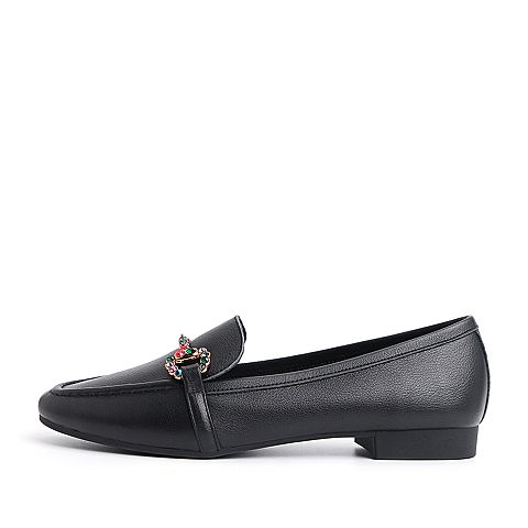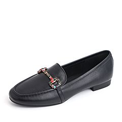 BELLE/百丽黑色彩钻马衔扣牛皮革乐福鞋女休闲鞋50169CM8