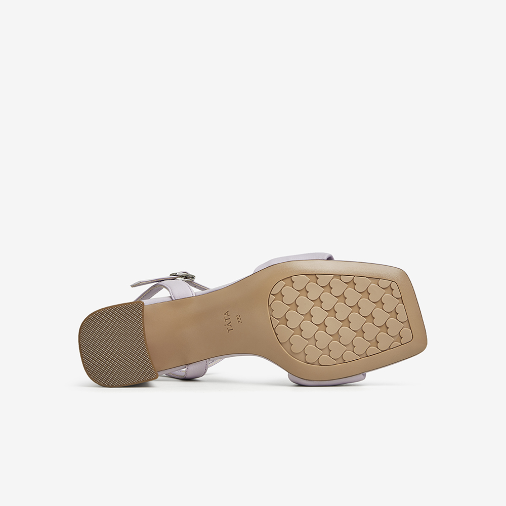 Tata/他她2023夏商场同款时尚百搭简约褶皱一字带凉鞋7MX05BL3