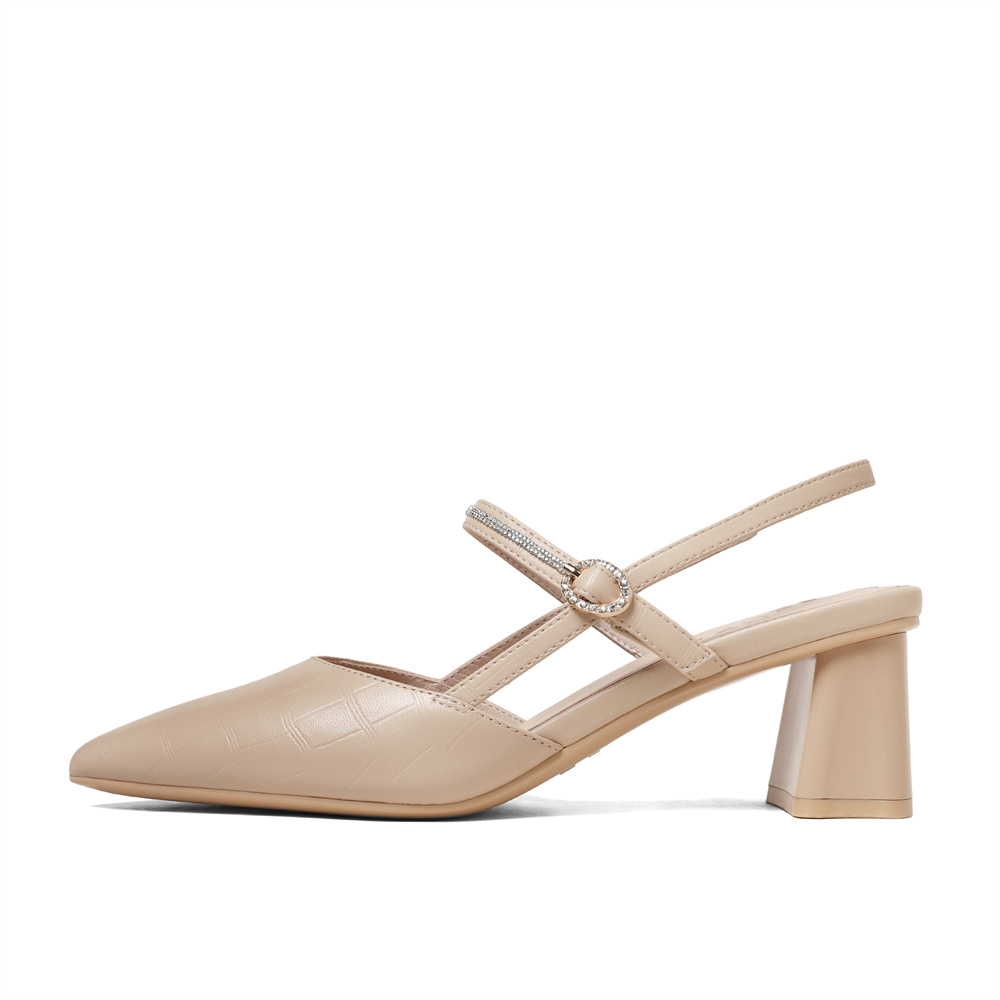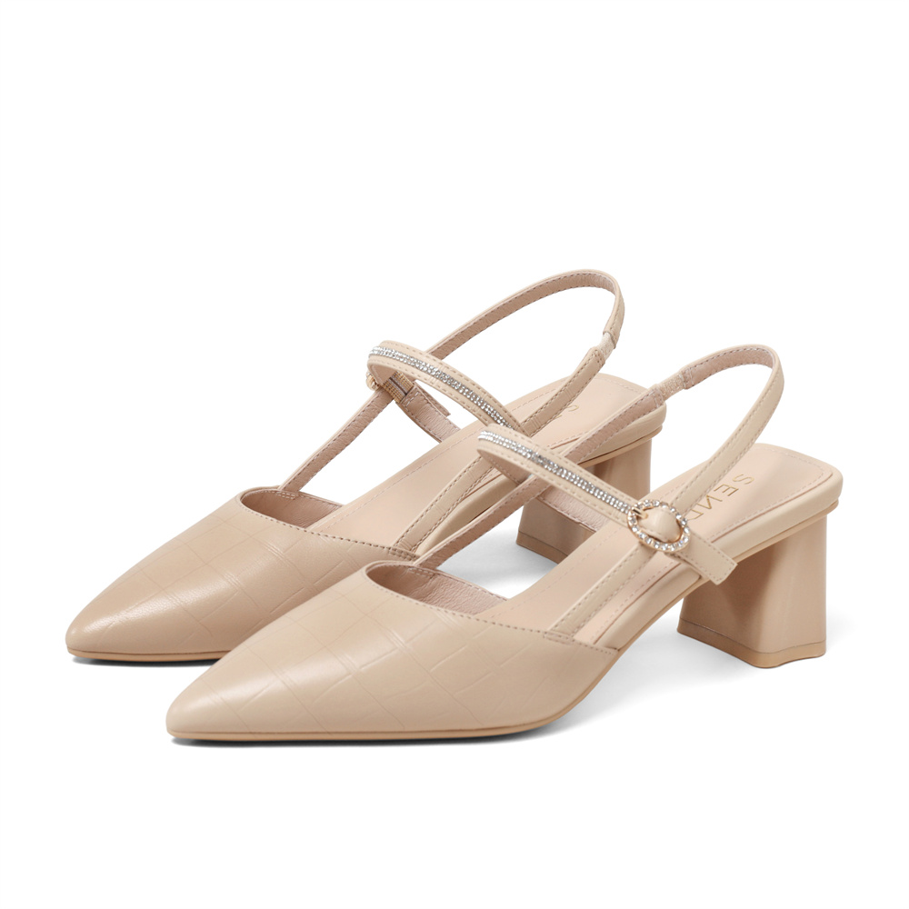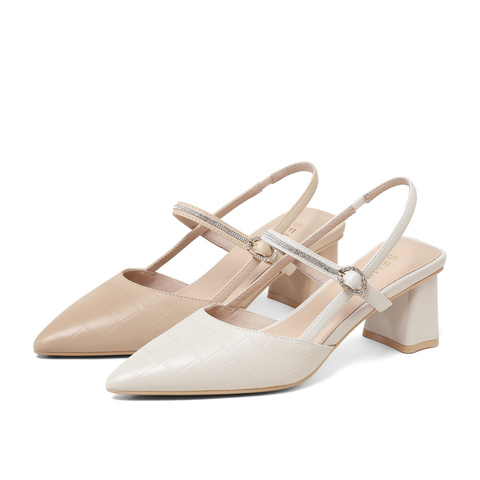 森达气质包头凉鞋女2023夏季新款商场同款性格尖头粗跟鞋SNL01BH3