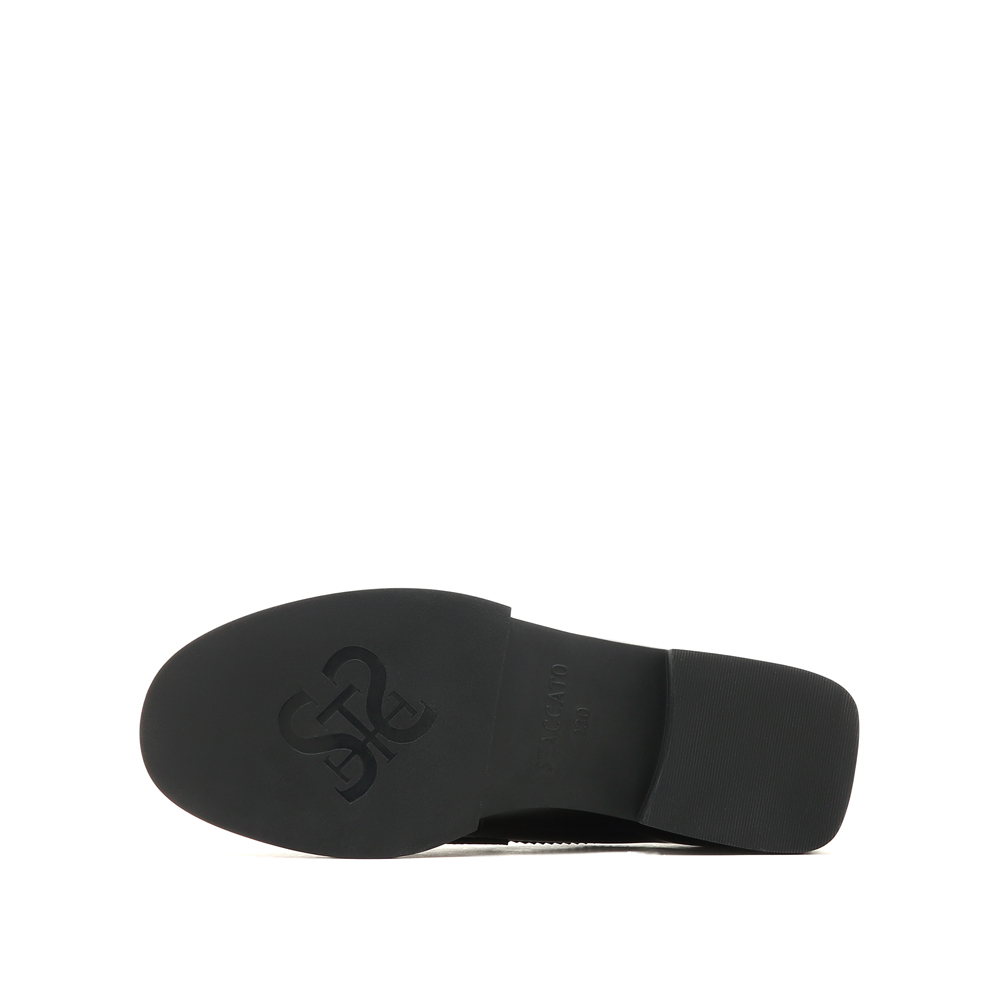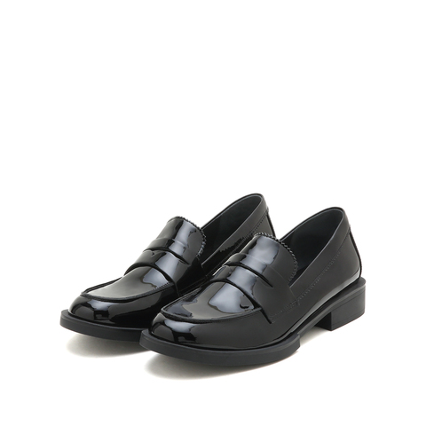 思加图2023春季新款简约圆头一脚蹬乐福鞋粗跟单鞋女皮鞋9UL02AM3
