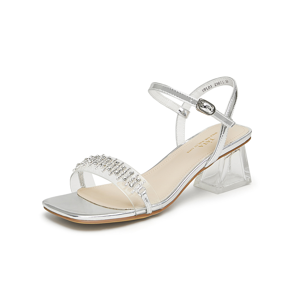 Tata/他她2024夏商场同款百搭简约一字带凉鞋女新款UFL01BL4
