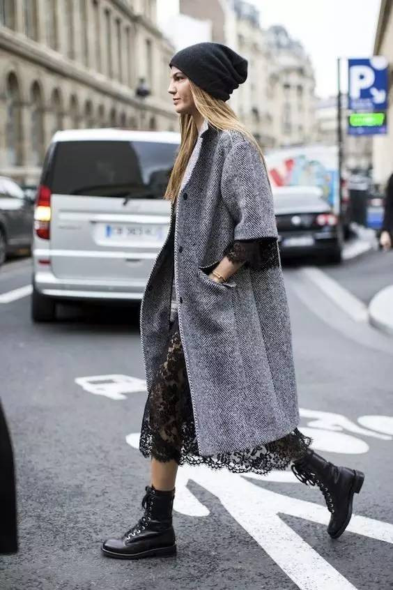 看起来硬气十足的马丁靴,配合女人味十足的蕾丝,却会有意想不到的效果。