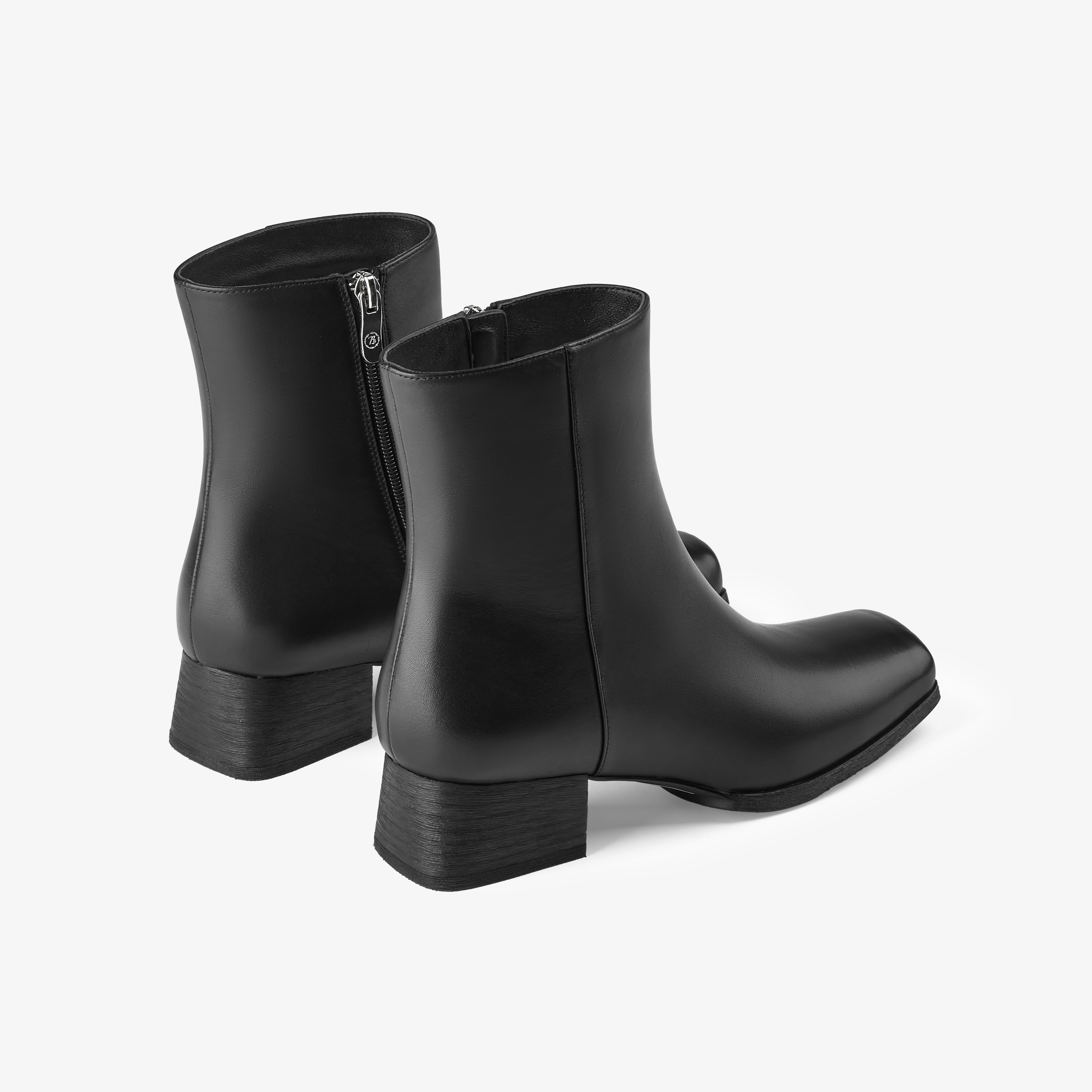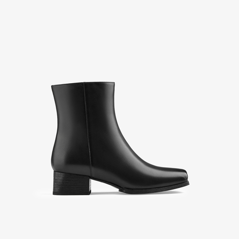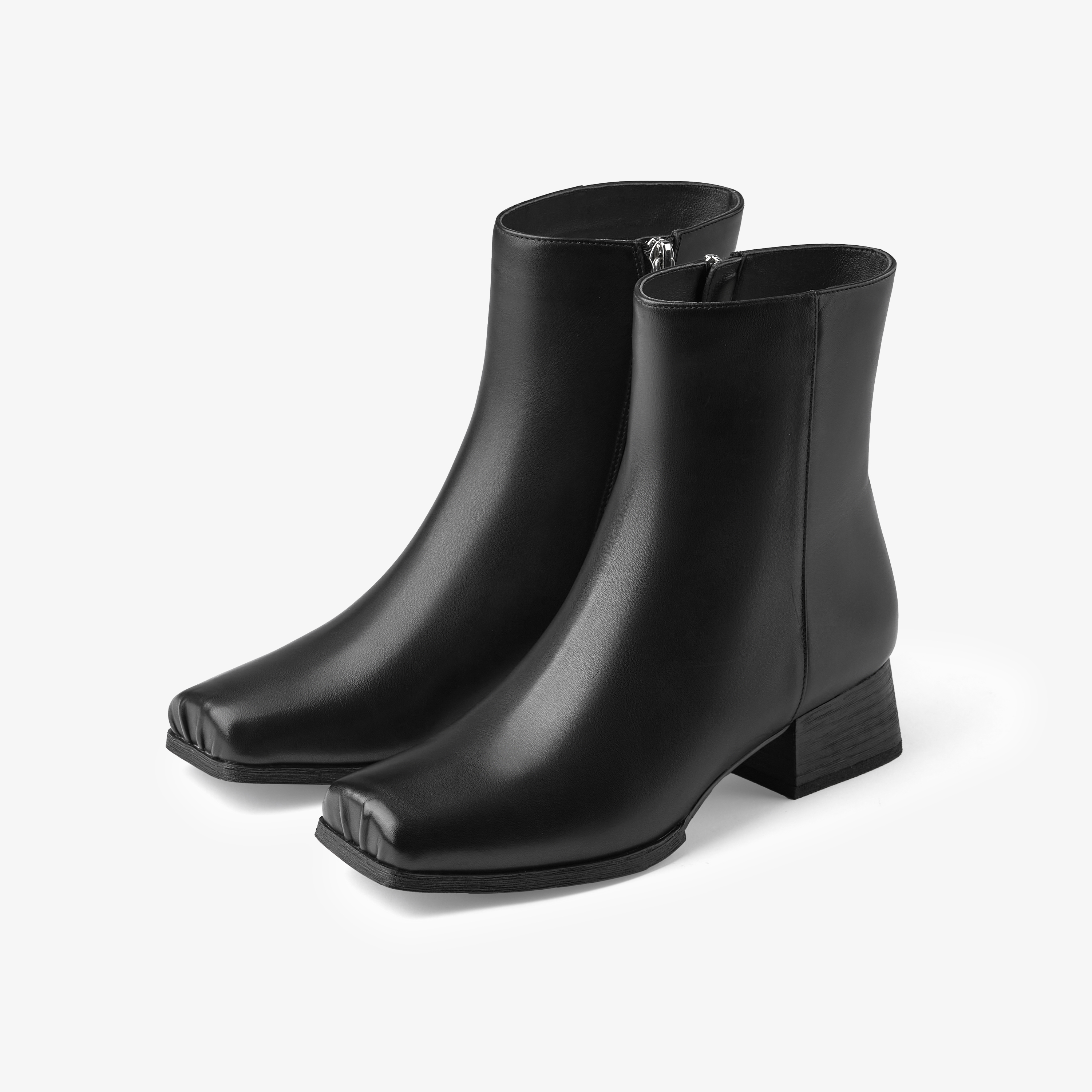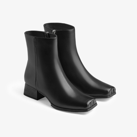 73hours女鞋Ari2024冬季新品方头纯色方跟拉链时装靴