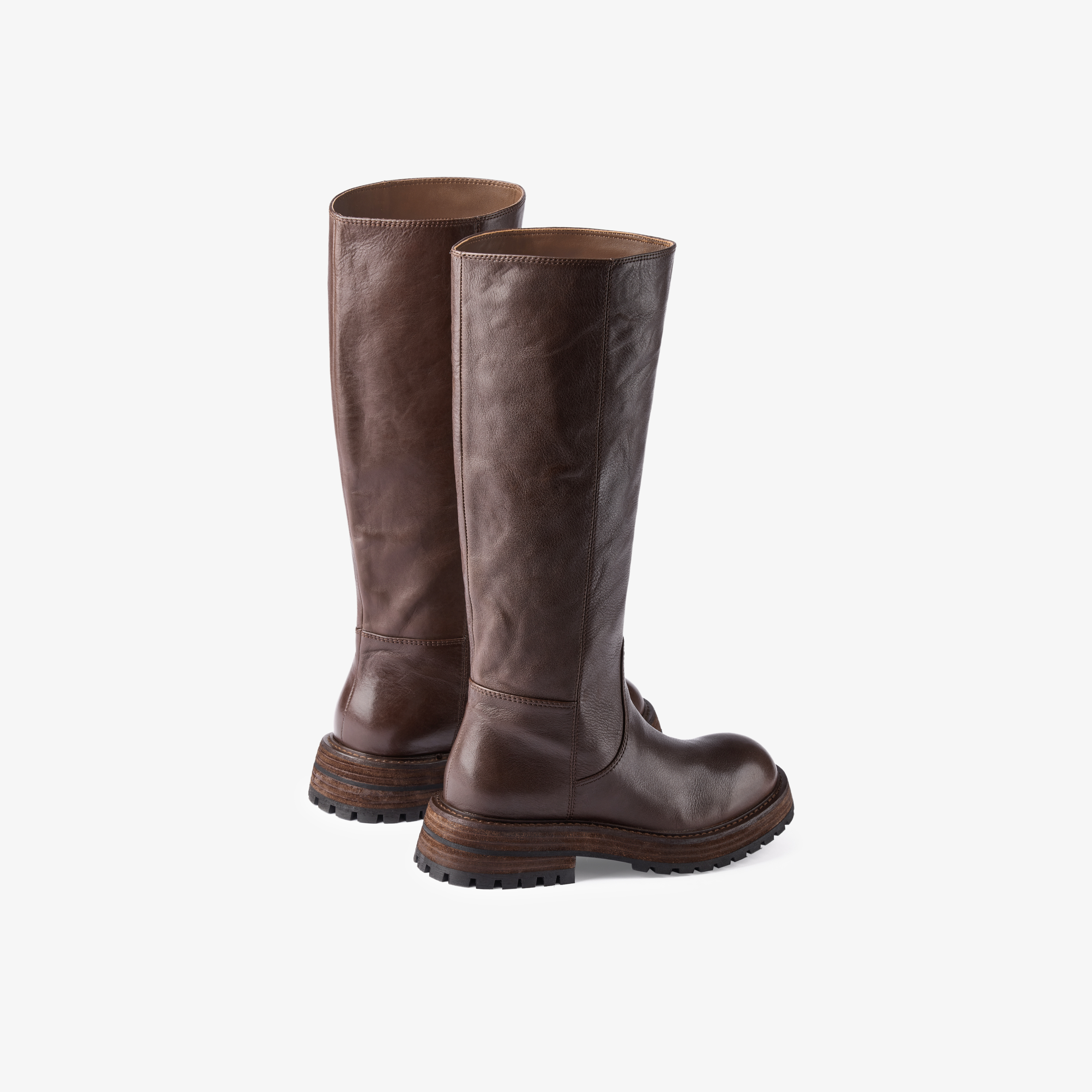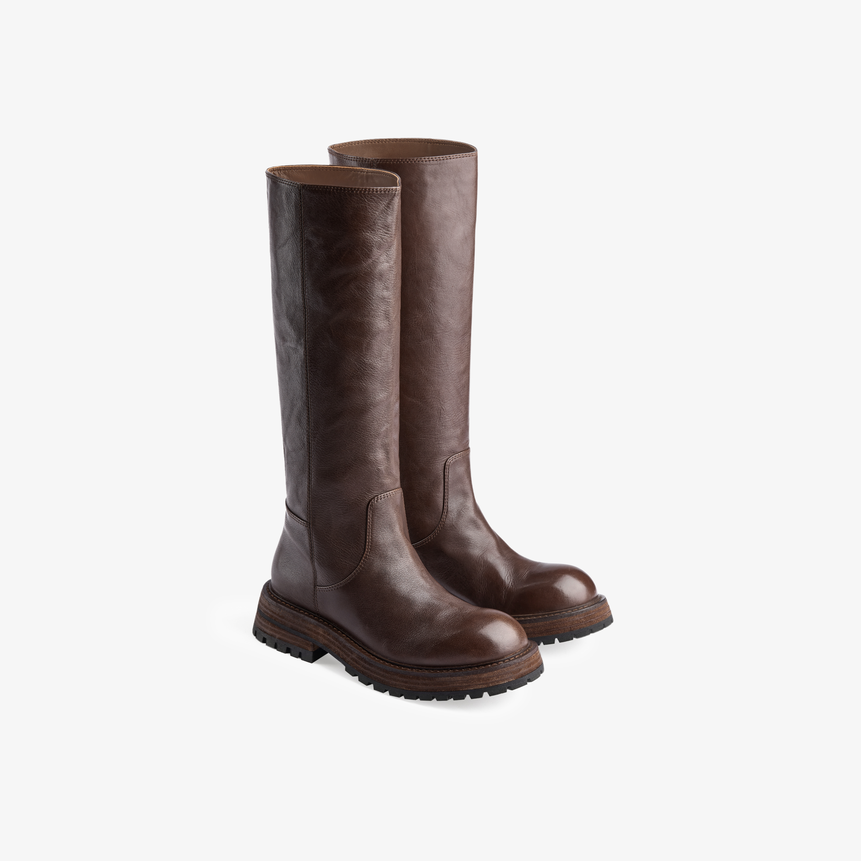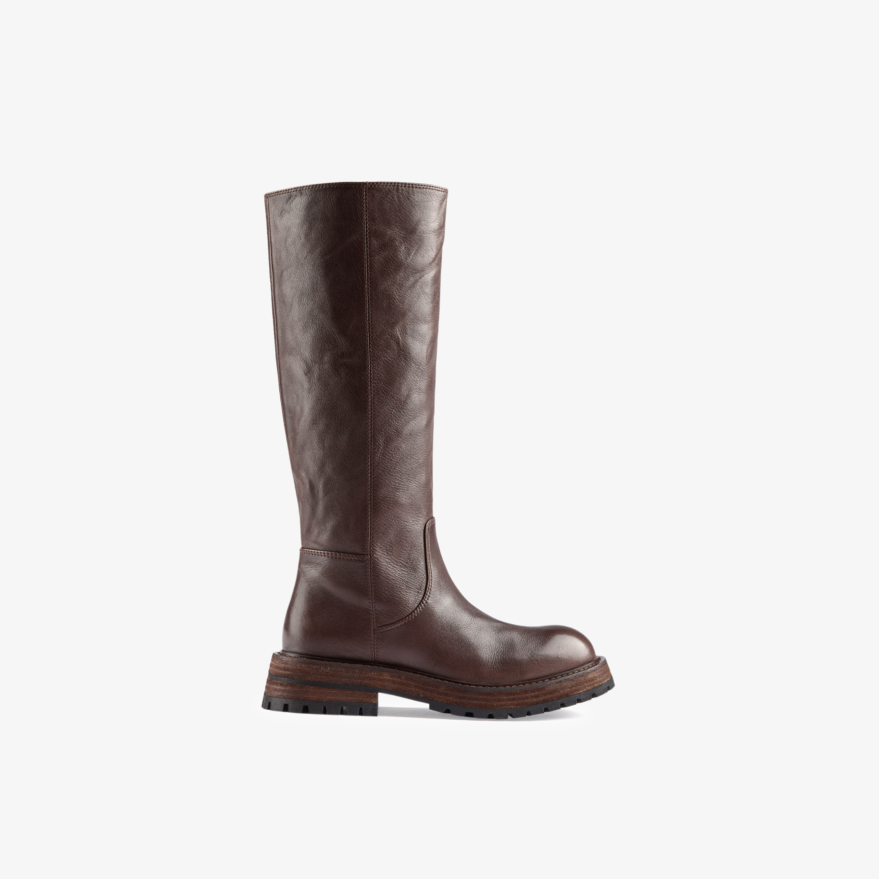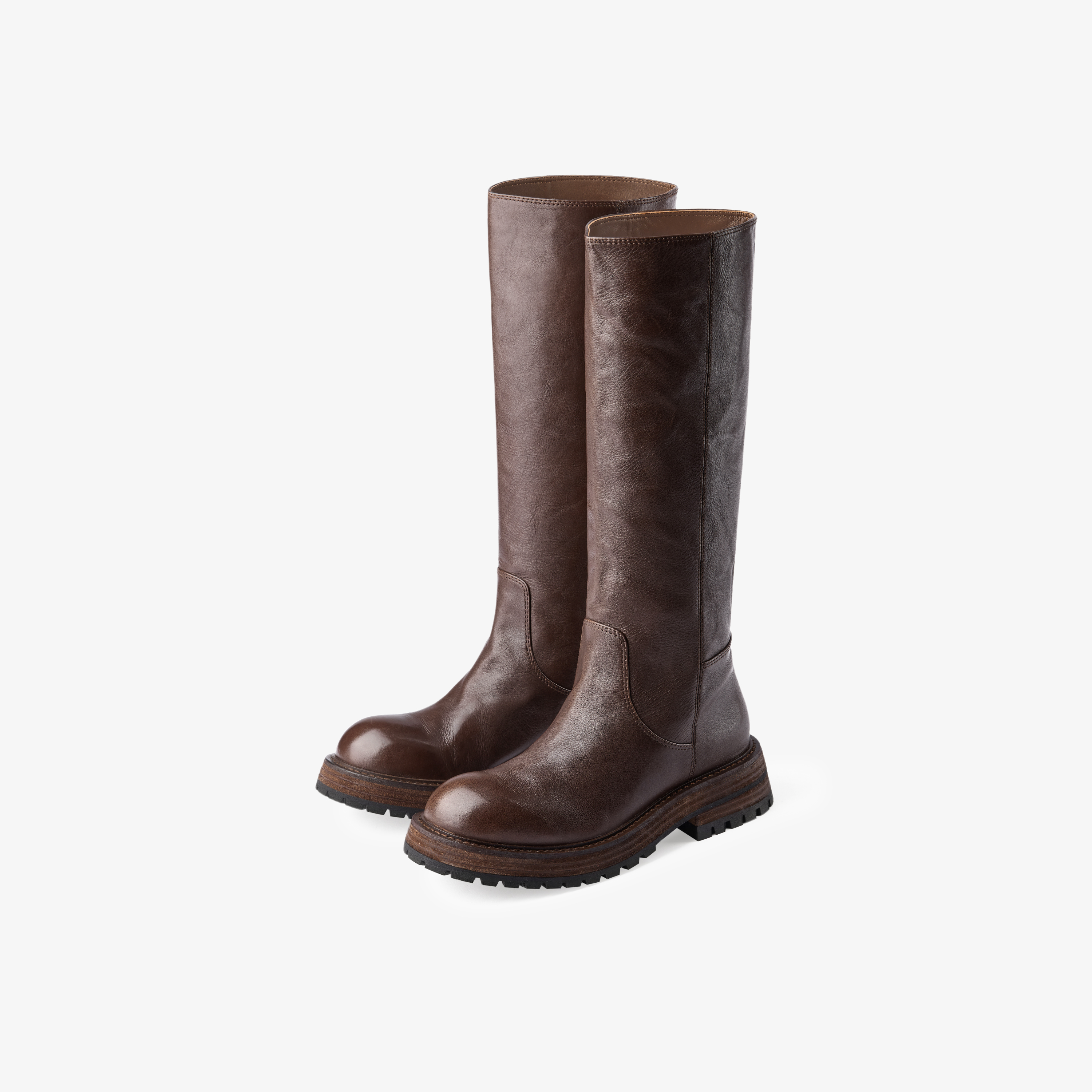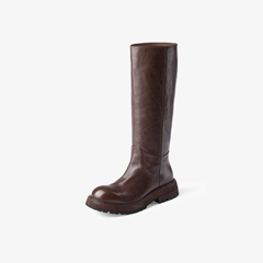 73hours女鞋胶片美拉德2024冬季新品纯色长筒圆头骑士靴