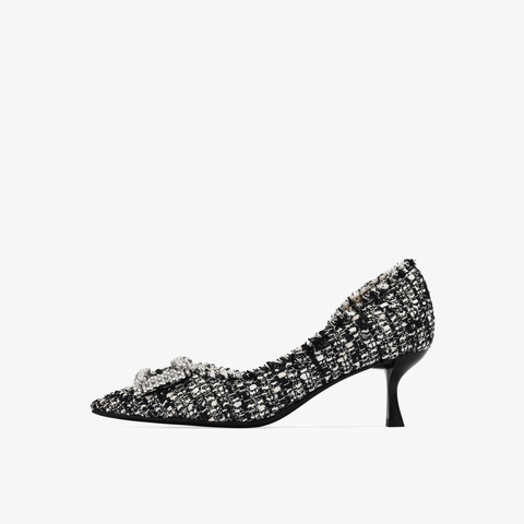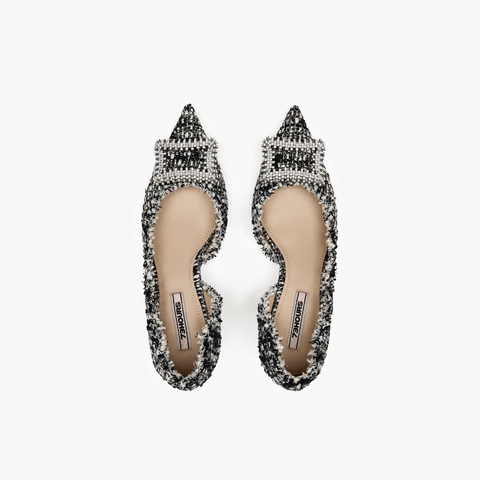 73hours女鞋尽兴优雅2025秋季新品细跟尖头纯色饰扣浅口单鞋