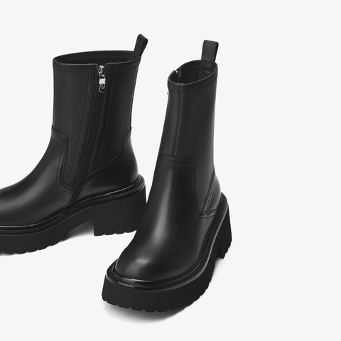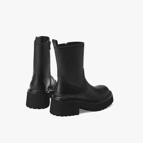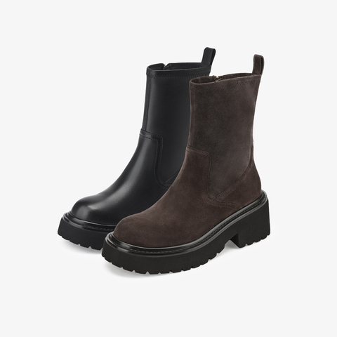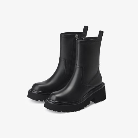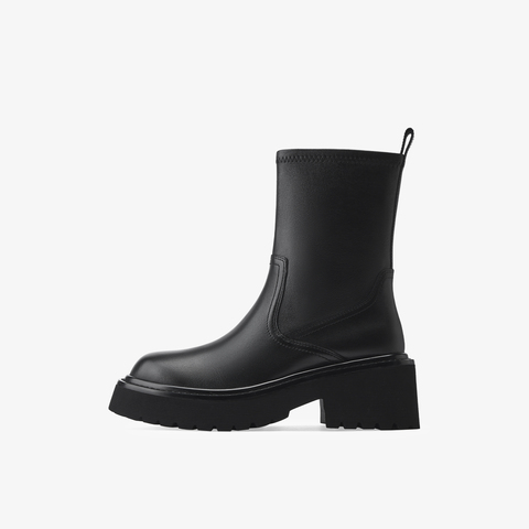 73hours女鞋自由轮廓2025冬季圆头纯色方跟弹力靴