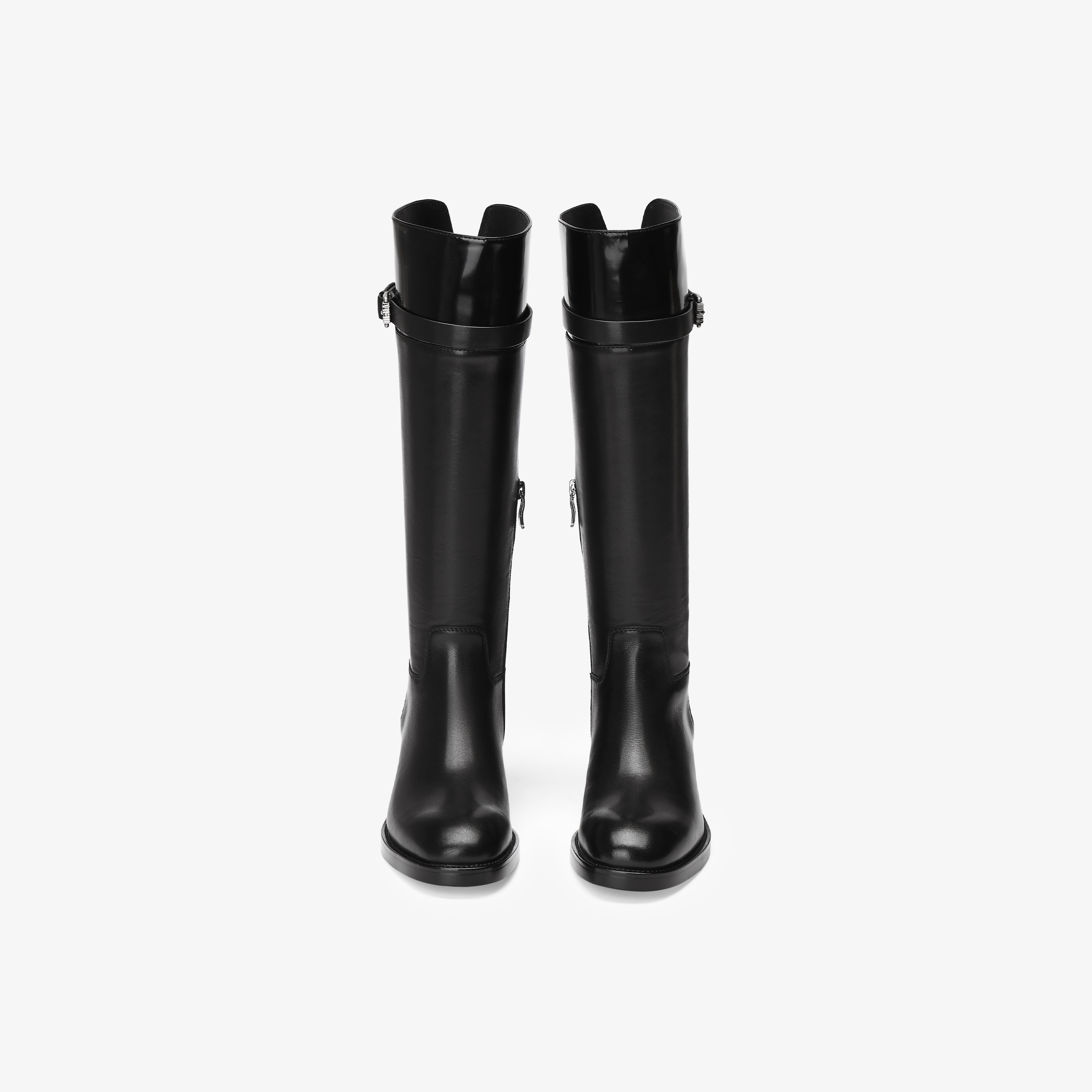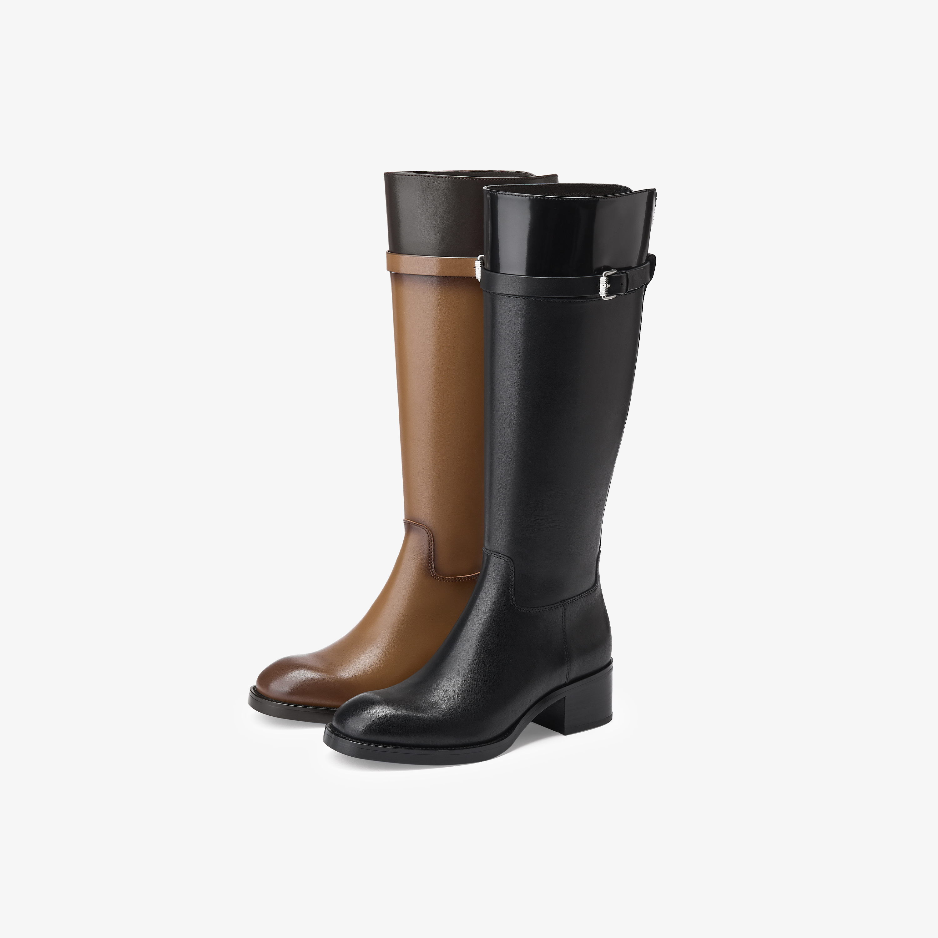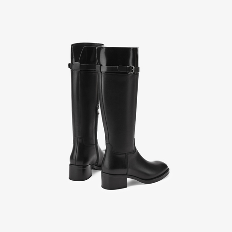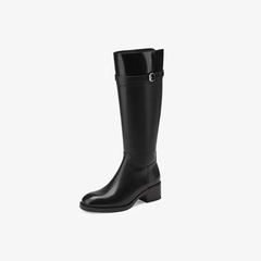 73hours女鞋马赛季节2025冬季新品平底圆头拼色骑士靴