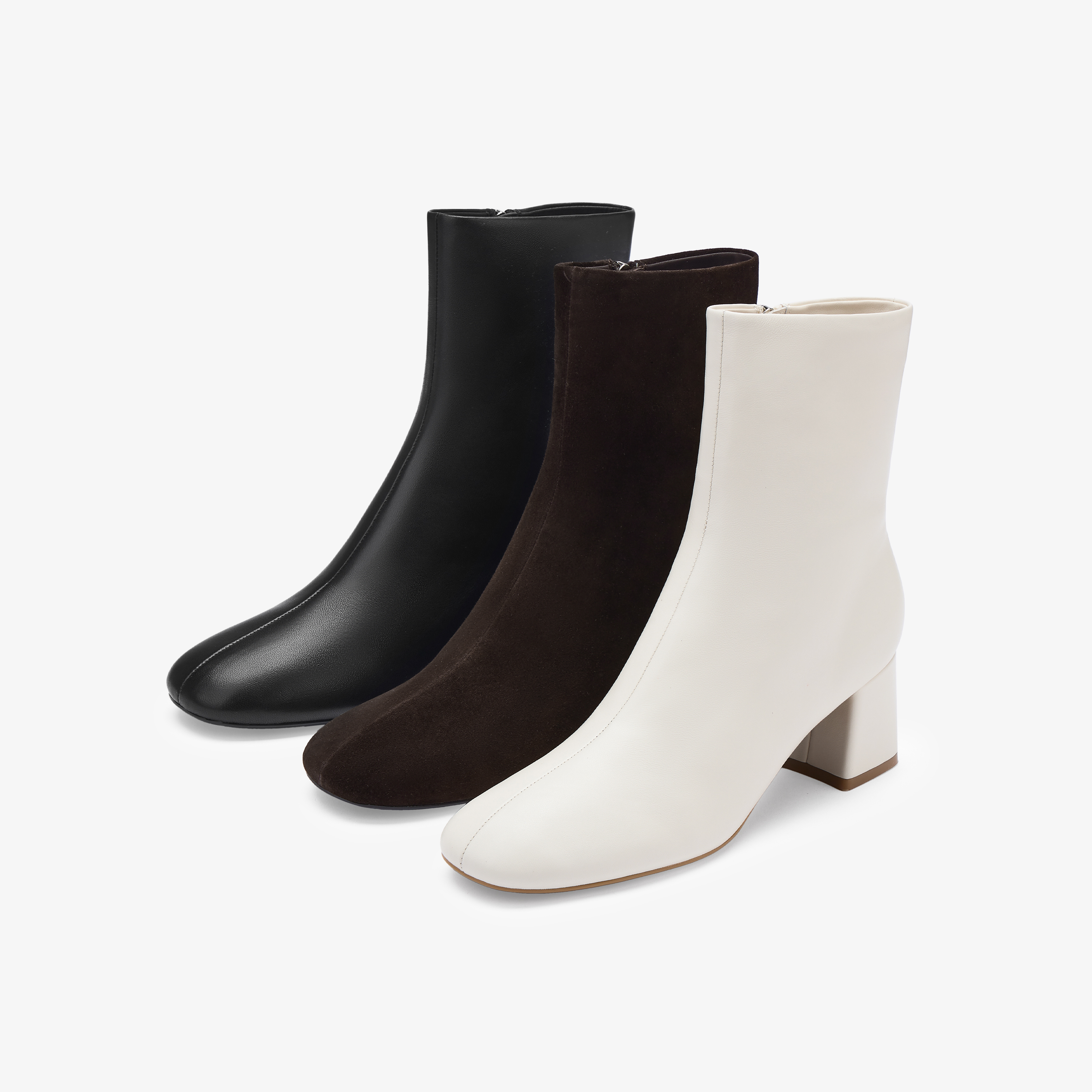 73hours女鞋回归极简2025冬季新品圆头方跟纯色时装靴