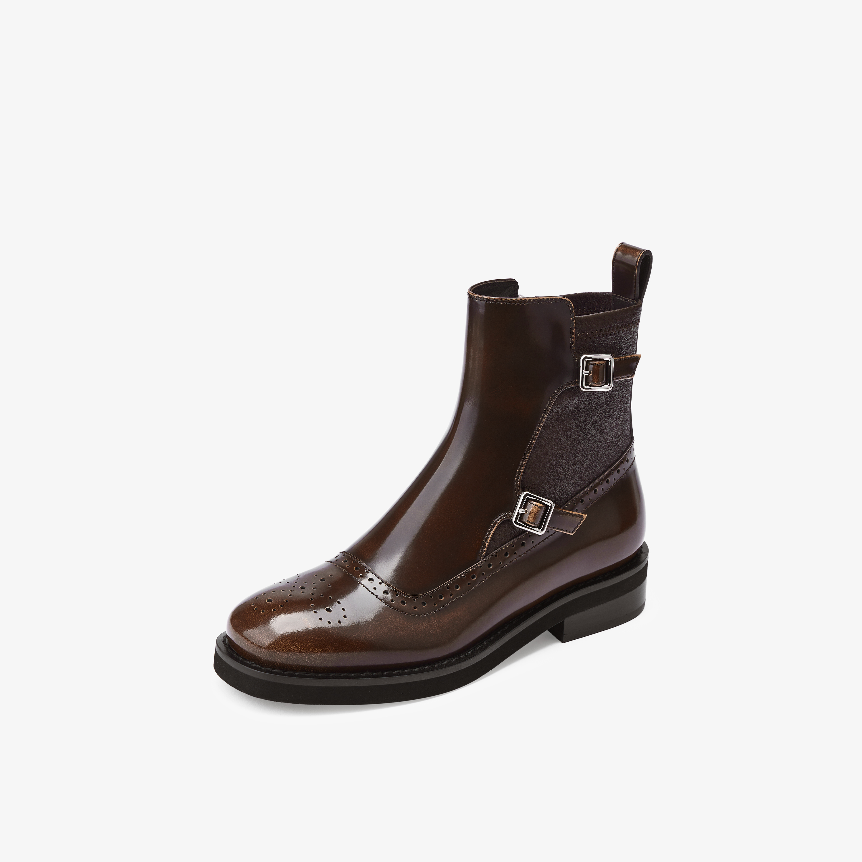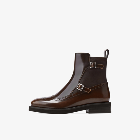 73hours女鞋邦德街2025冬季新品圆头饰扣纯色切尔西靴