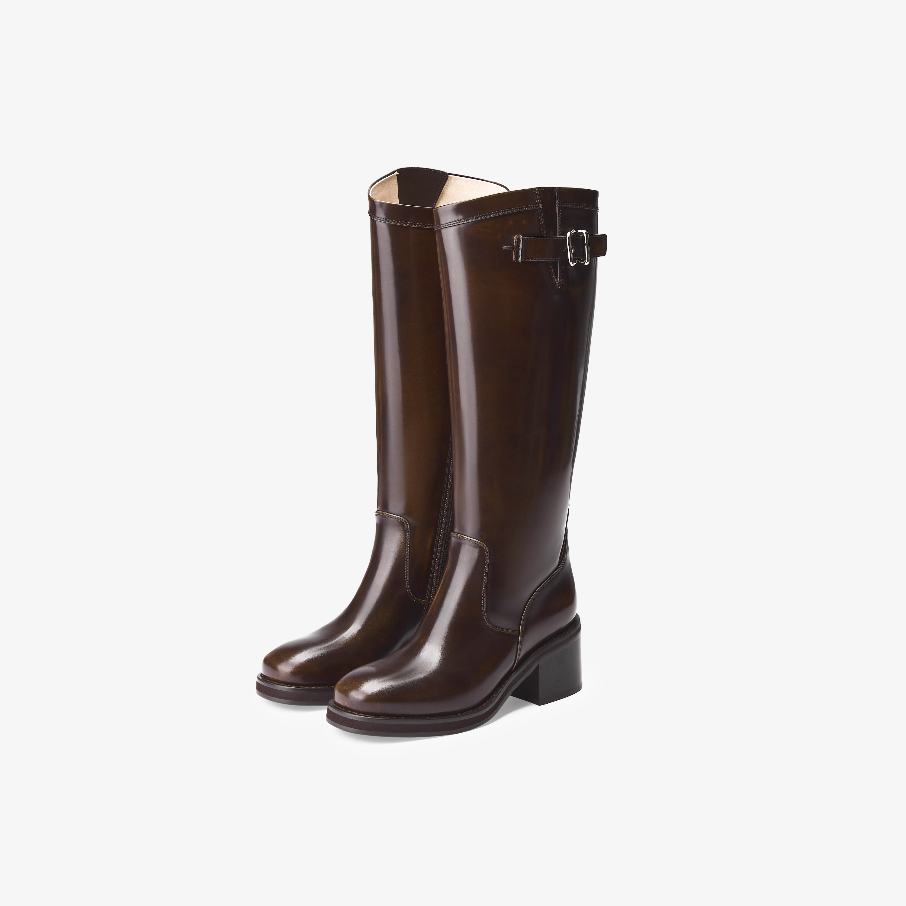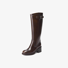 73hours女鞋科切拉狂欢2025冬季新品方跟纯色长筒骑士靴