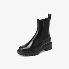 73hours女鞋苏荷街头2025冬季新品圆头方跟纯色切尔西靴