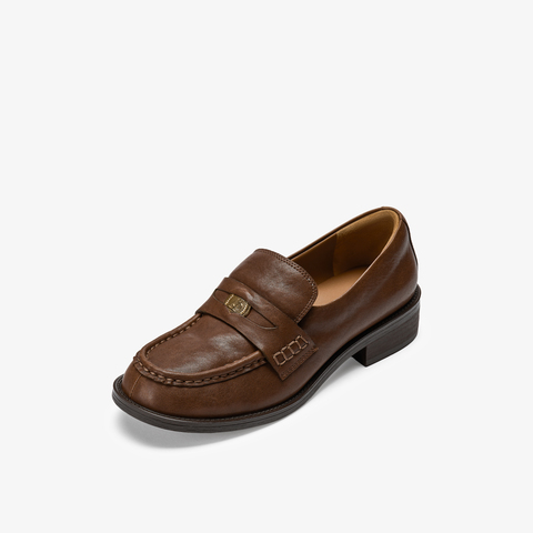 73hours女鞋舒适印记2026春季新品方跟纯色乐福鞋