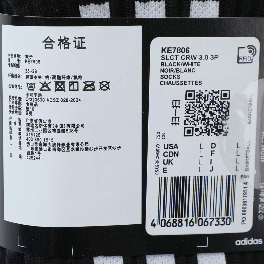adidas阿迪达斯2025中性SLCT CRW 3.0 3P长袜优惠装KE7806