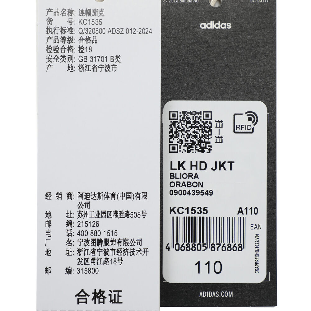 adidas阿迪达斯2025女小童LK HD JKT针织连帽外套KC1535