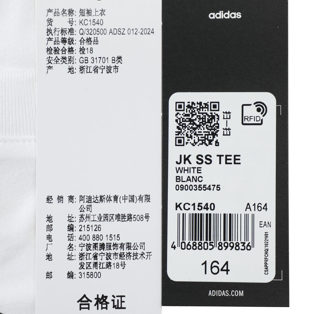 adidas阿迪达斯2025男大童JK SS TEE针织无领短TKC1540