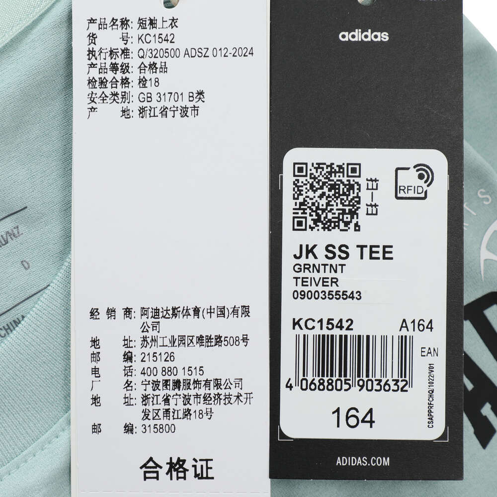 adidas阿迪达斯2025男大童JK SS TEE针织无领短TKC1542