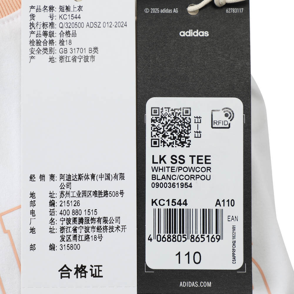 adidas阿迪达斯2025女小童LK SS TEE针织无领短TKC1544