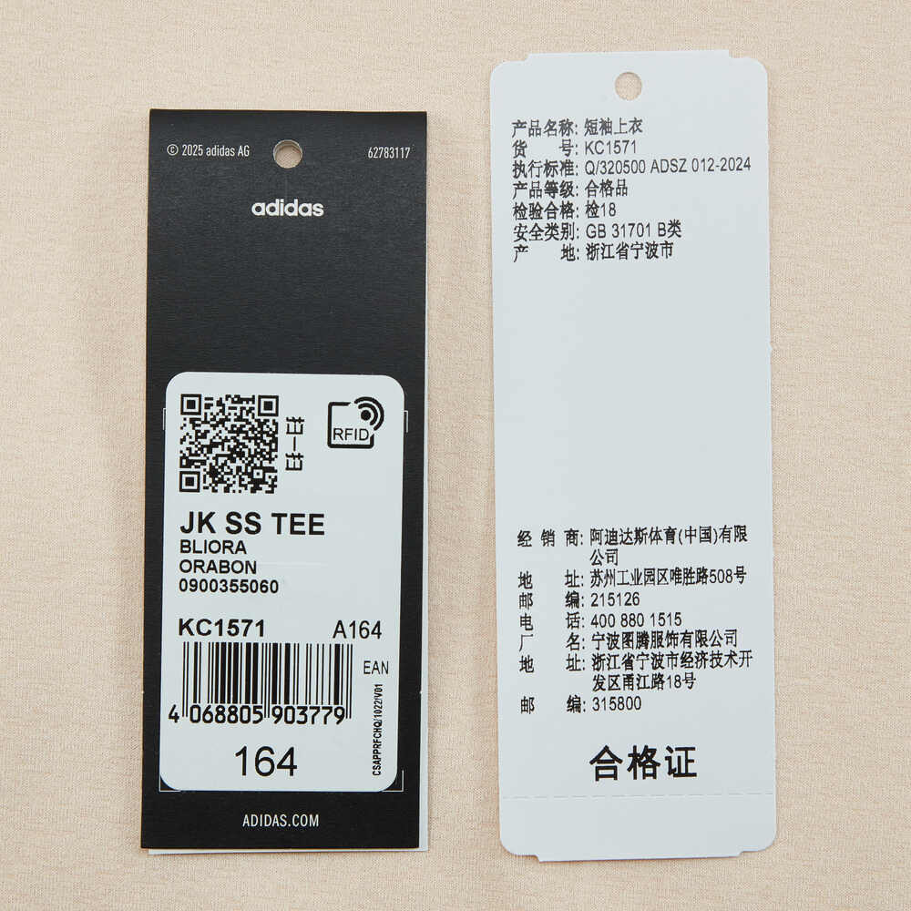 adidas阿迪达斯2025女大童JK SS TEE针织无领短TKC1571