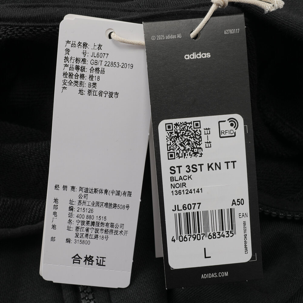 adidas阿迪达斯2025男子ST 3ST KN TT针织连帽外套JL6077