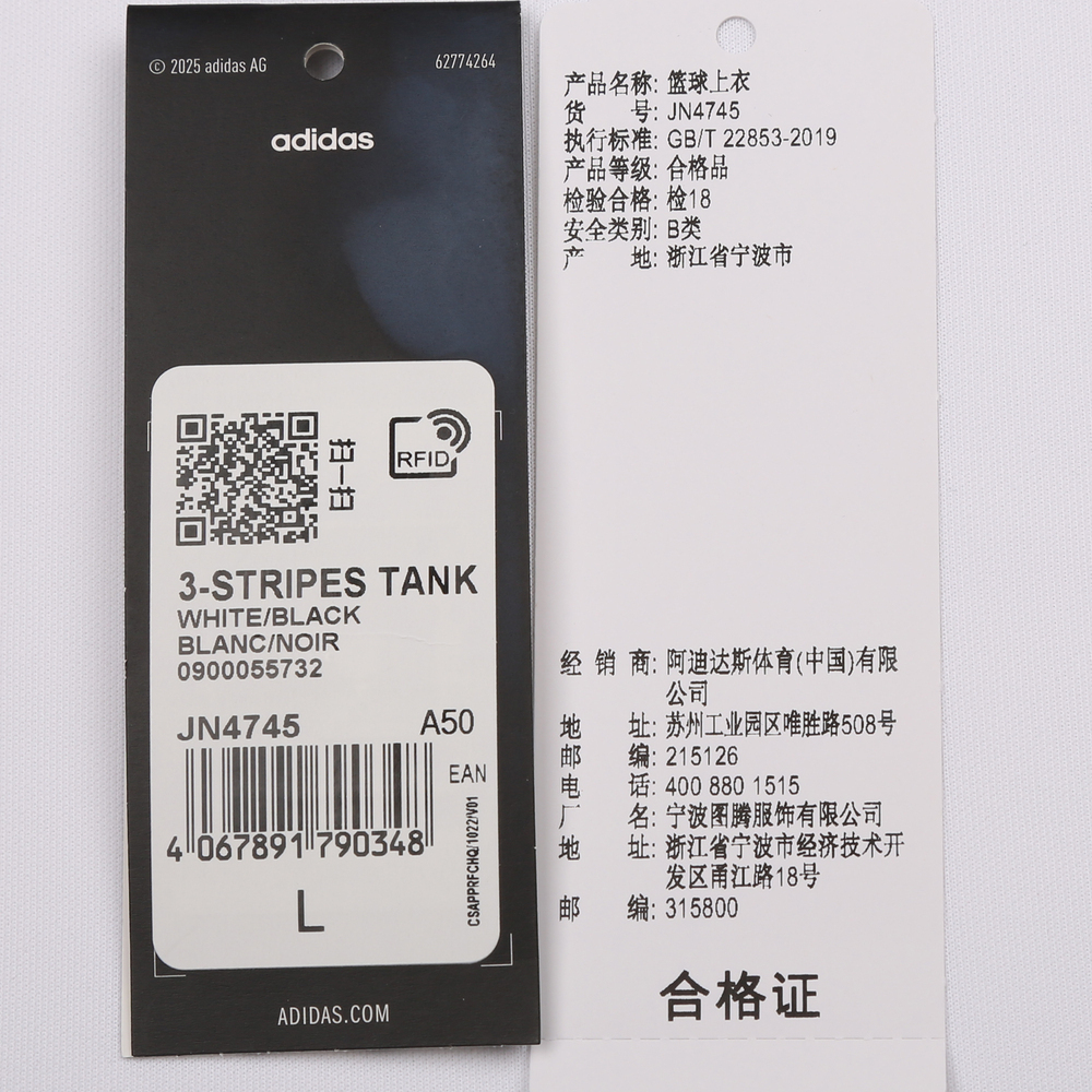 adidas阿迪达斯2025男子3-STRIPES TANK运动背心JN4745