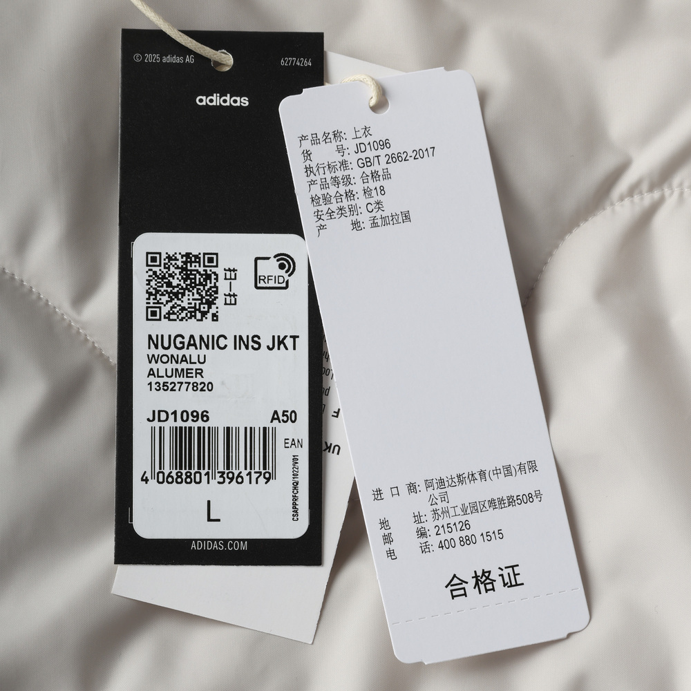 adidas阿迪达斯2025男子NUGANIC INS JKT薄棉服JD1096