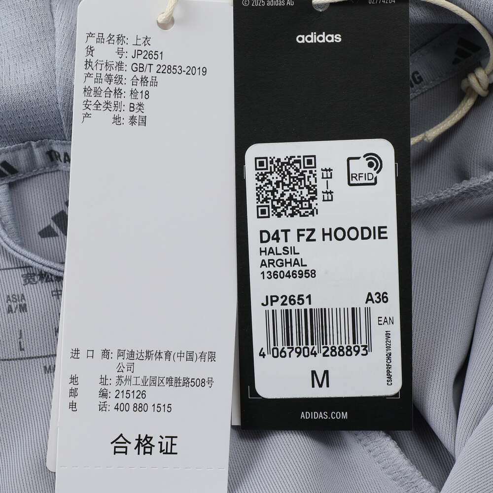 adidas阿迪达斯2025女子D4T FZ HOODIE针织连帽外套JP2651