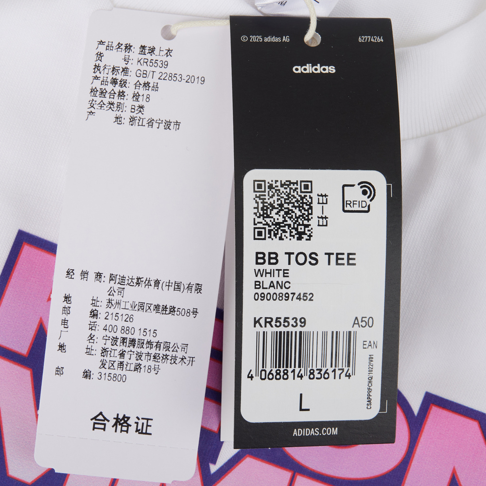 adidas阿迪达斯2025男子BB TOS TEE针织无领短TKR5539