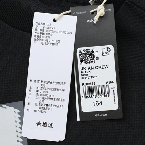 adidas阿迪达斯2025男大童JK KN CREW针织无帽卫衣KS0643