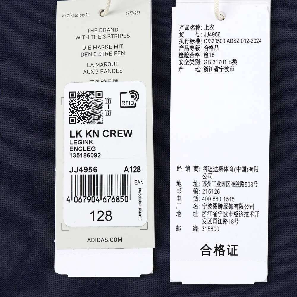 adidas阿迪达斯2024男小童LK KN CREW针织圆领套衫JJ4956