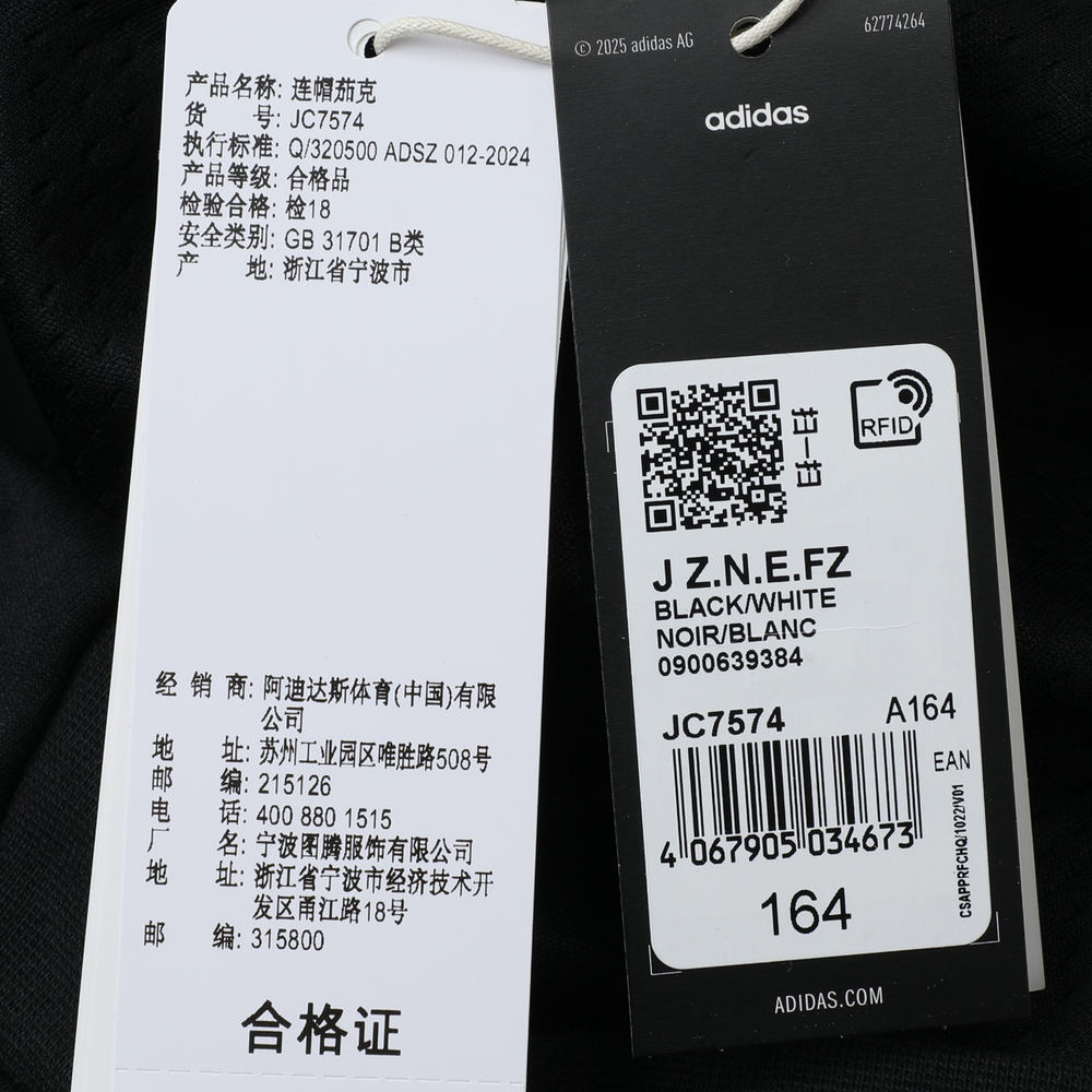 adidas阿迪达斯2025男大童J Z.N.E.FZ针织连帽外套JC7574