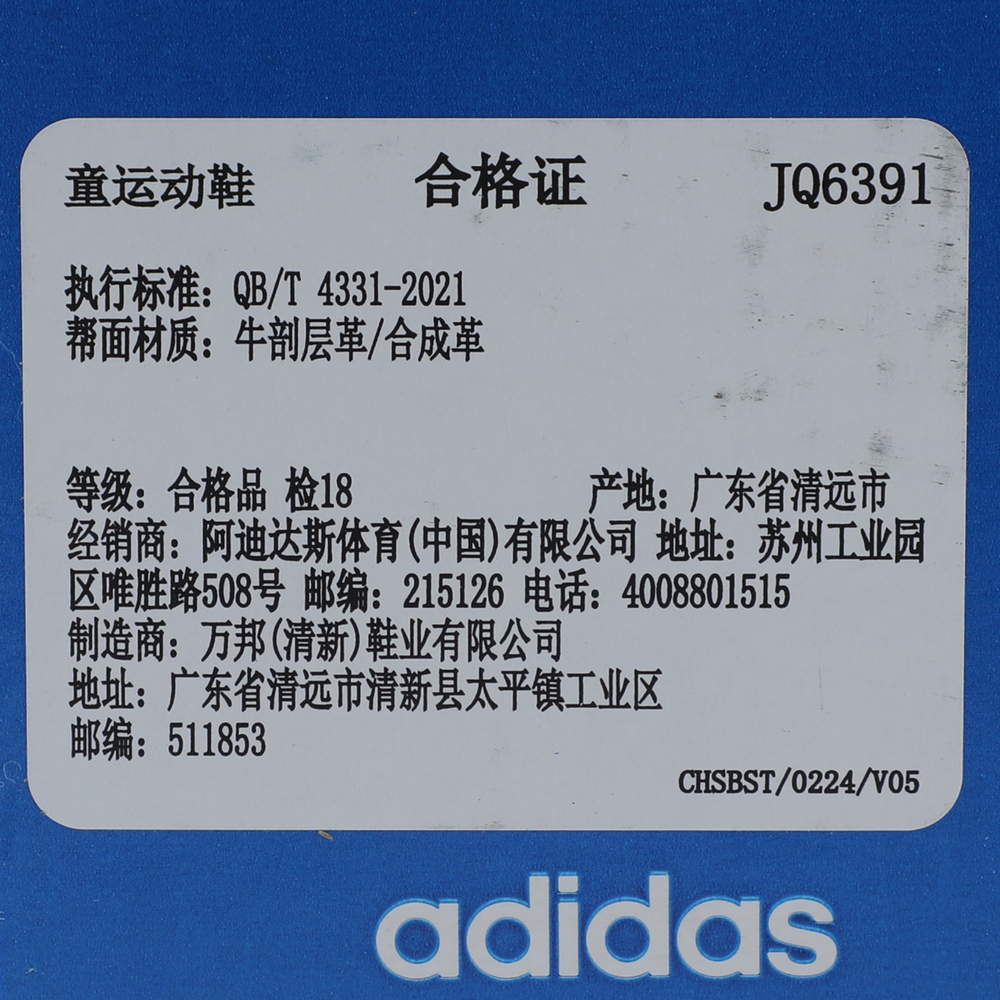 adidas阿迪达斯2025男小童SAMBA OG CF EL C三叶草童装JQ6391