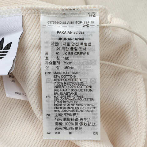 adidas阿迪达斯2025男大童JK BB CREW 8针织无帽卫衣KG6622