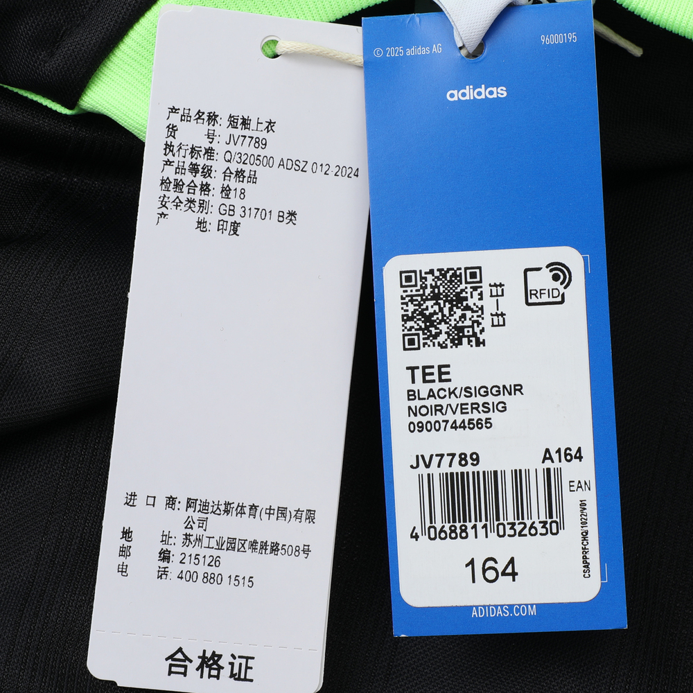 adidas阿迪达斯2025男大童TEE针织无领短TJV7789