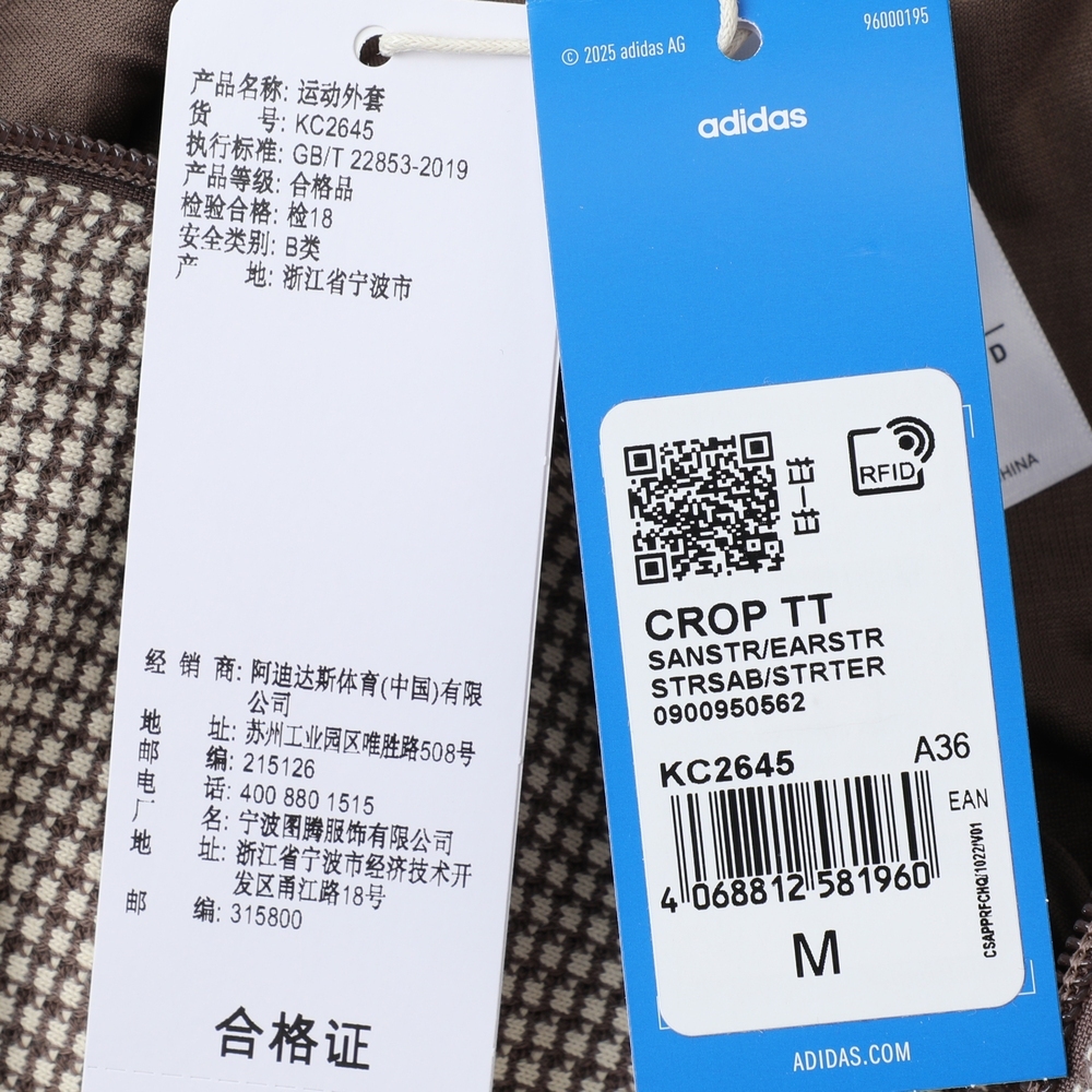 adidas Originals阿迪三叶草2025女子CROP TT针织无帽外套KC2645