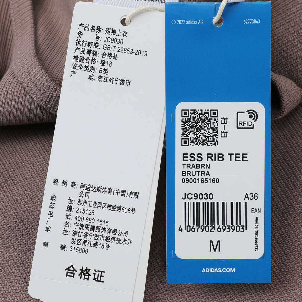 adidas Originals阿迪三叶草2025女子ESS RIB TEE针织无领短TJC9030