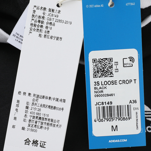 adidas Originals阿迪三叶草2025女子3S LOOSE CROP T针织无领短TJC8149