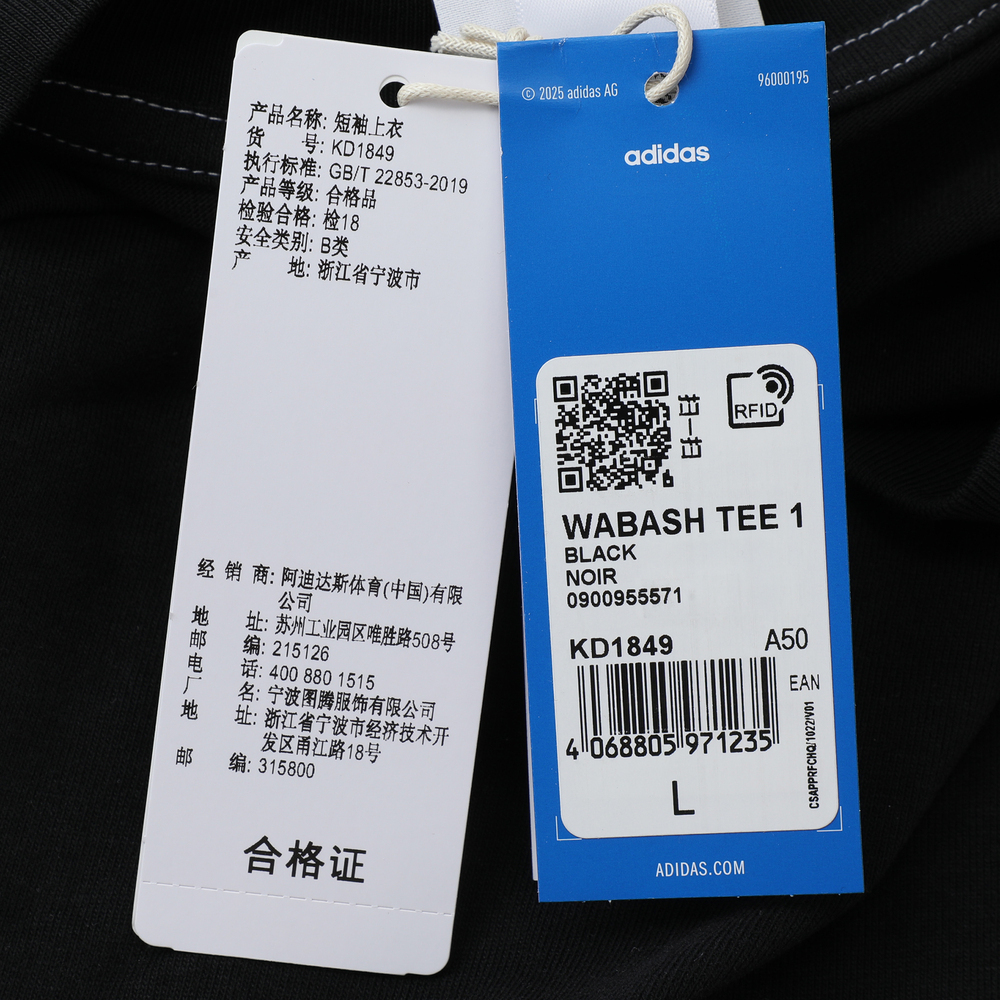 adidas Originals阿迪三叶草2025男子WABASH TEE 1针织无领短TKD1849